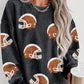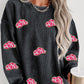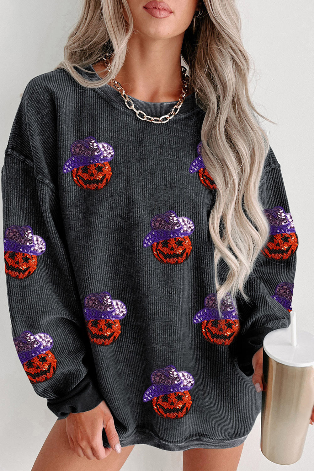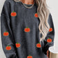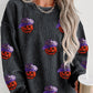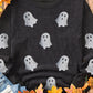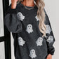 Black Halloween Ghost Corded Crew Neck Loose Sweatshirt