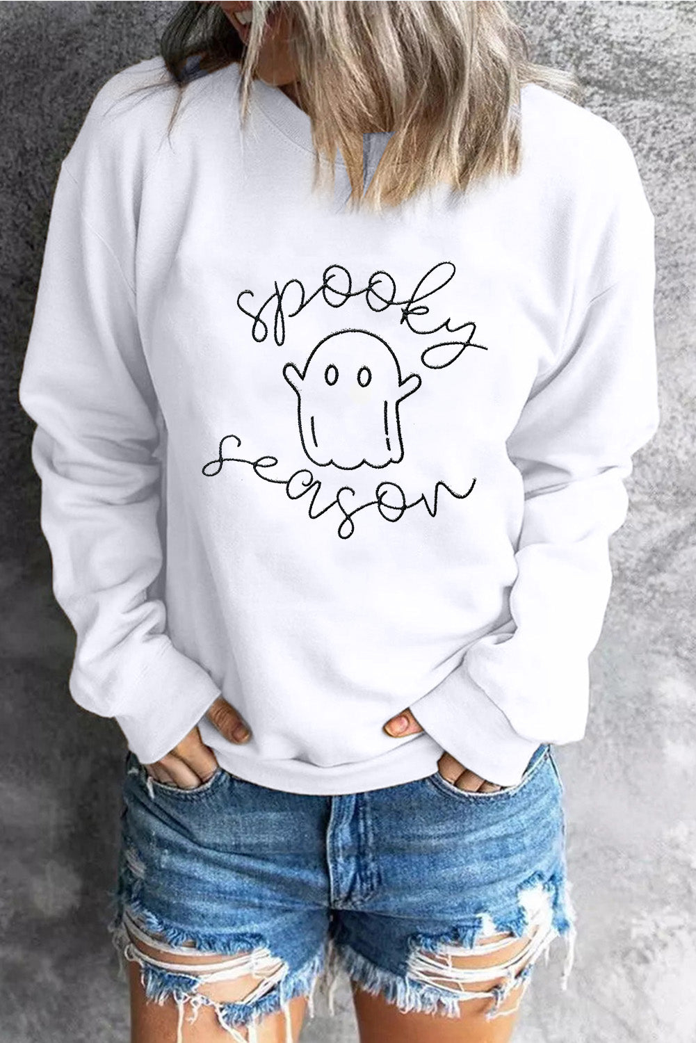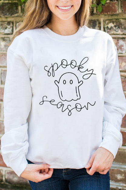 Beige Cute Ghost Spooky Season Graphic Halloween Sweatshirt
