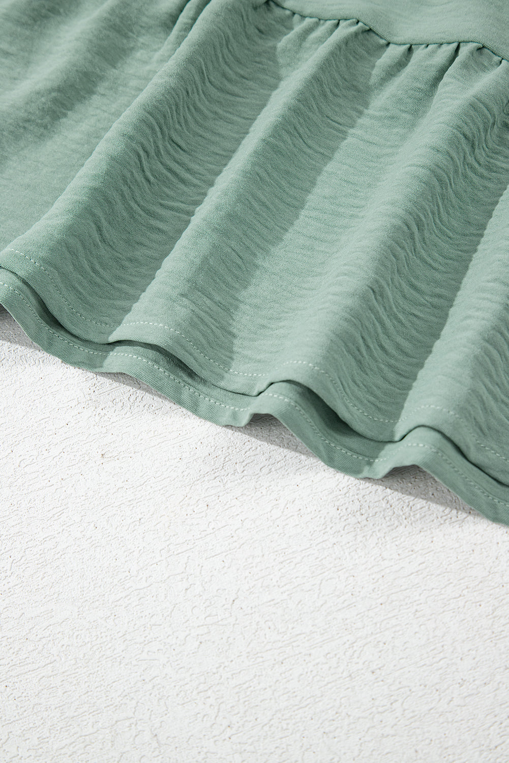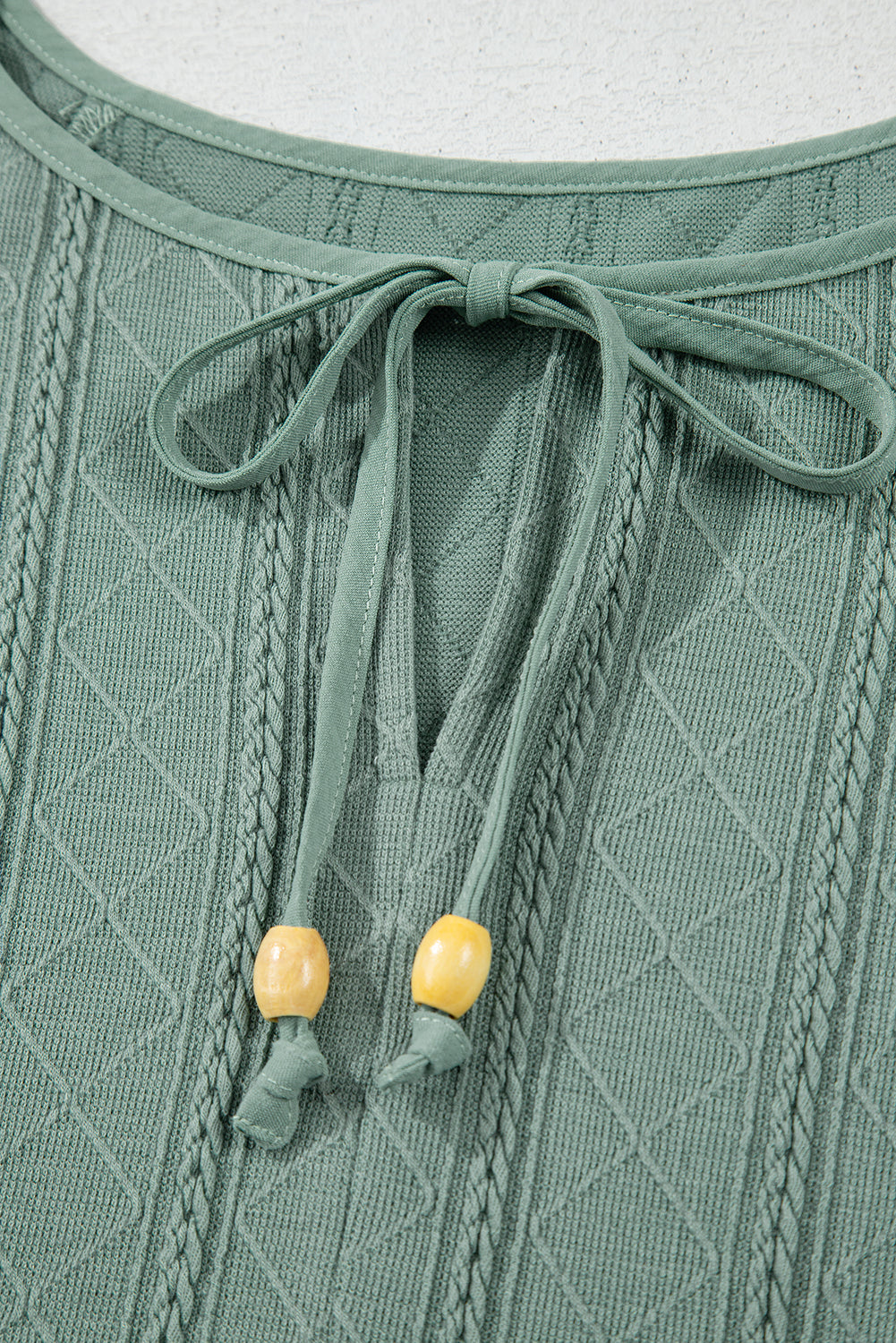 Laurel Green Tie Split Neck Textured Ruffle Patchwork Blouse