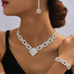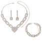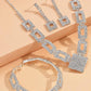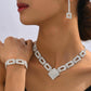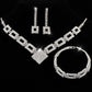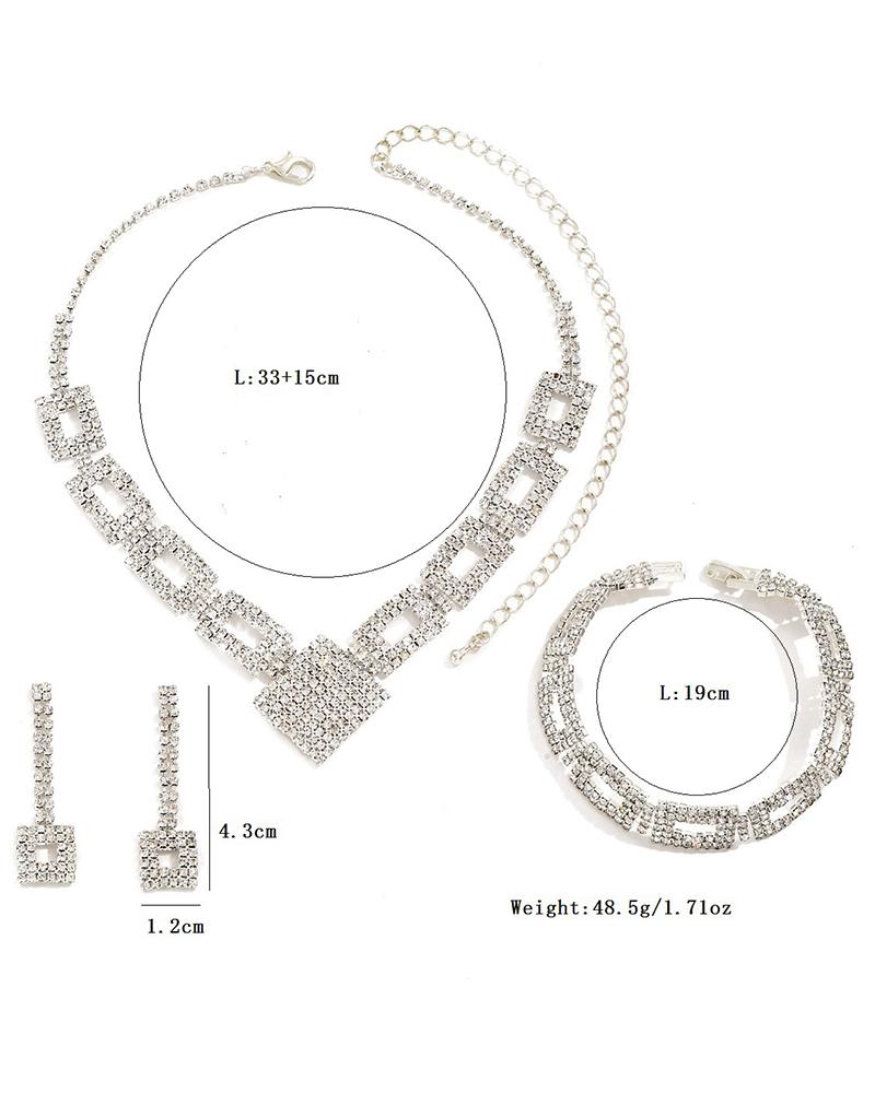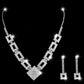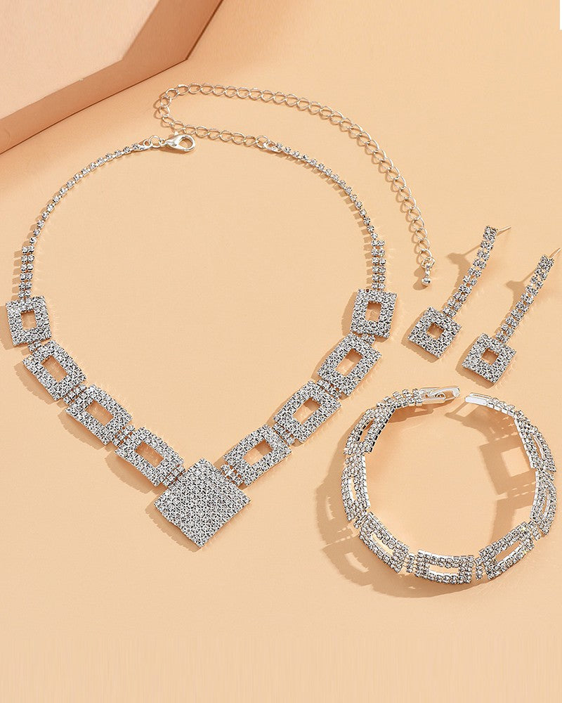 3PCS Allover Rhinestone Hollow Out Square Pendant Necklace & Drop Earrings & Bracelet Evening Party Wedding Jewelry Set