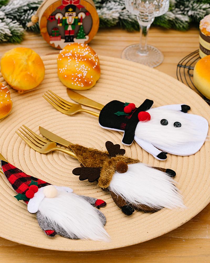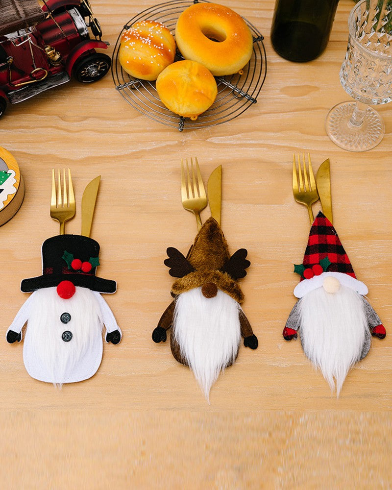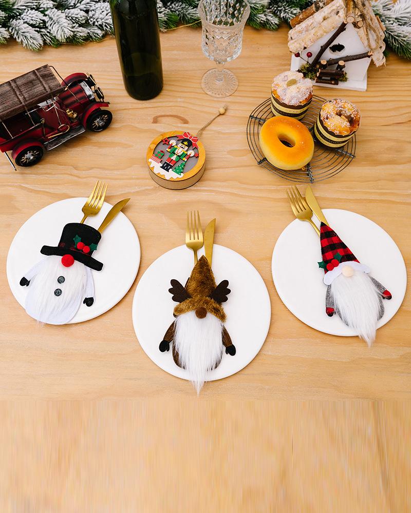 3pcs Christmas Decorations Gnome Snowman Elk Santa Silverware Holders Party Supplies Set