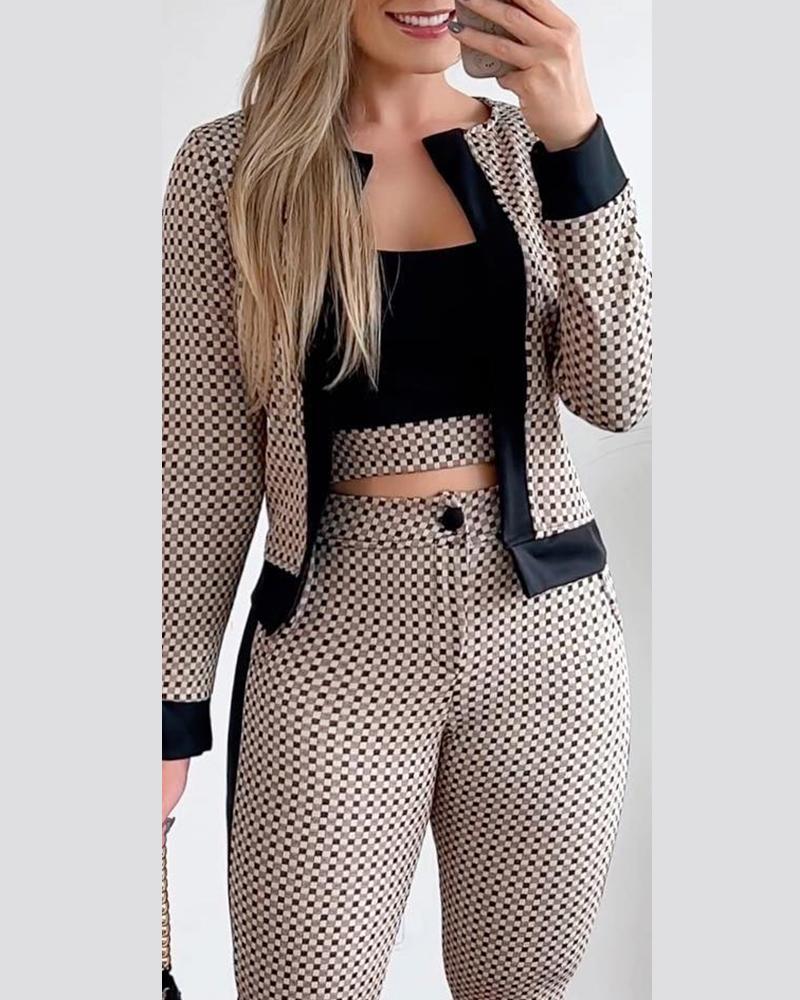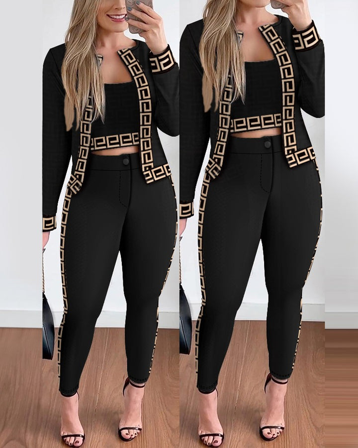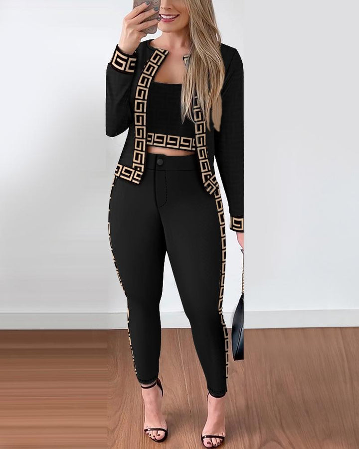 3PCS Geo Tape Patch Tank Top & Pants Set With Coat
