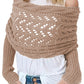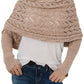 Camel Cross Detail Hollowed Knit Scarf with Sleeves