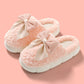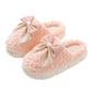 Pink Contrast Bowknot Applique Plush Winter Slippers