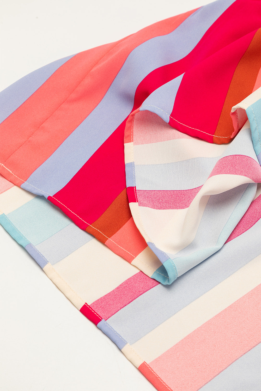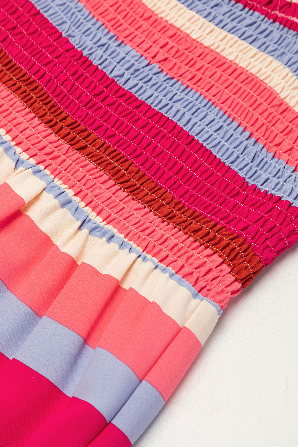 Red Stripe Ruffled Straps Smocked Tiered Long Dress