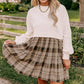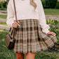 Beige Plaid Patchwork High Waist Sweatshirt Mini Dress