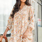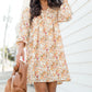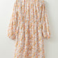 Yellow Boho Floral V Neck Ruffled Empire Waist Long Sleeve Mini Dress