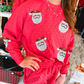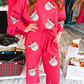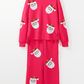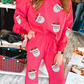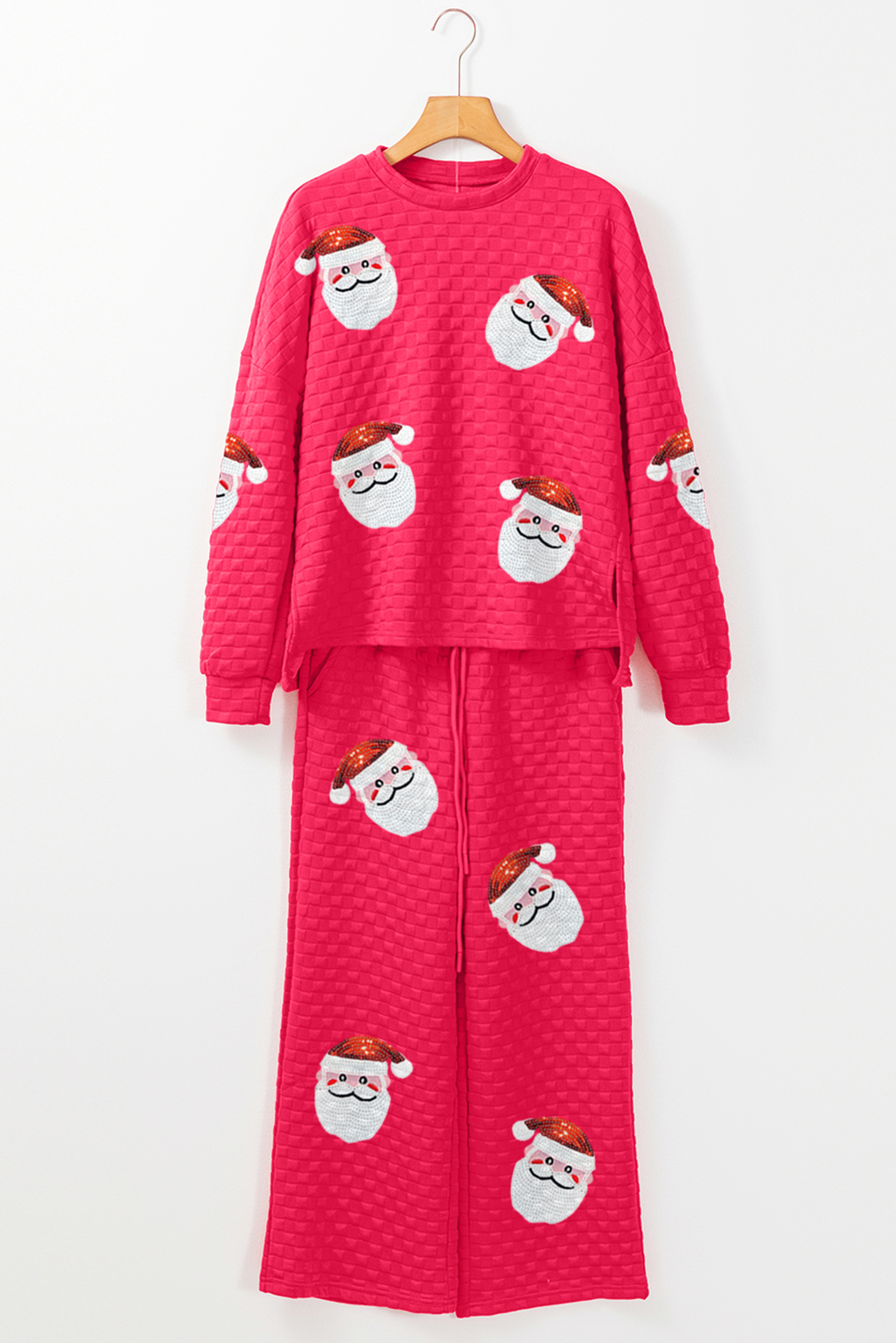 Strawberry Pink Sequin Father Christmas Patched Casual Textured 2pcs Pants Set