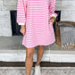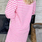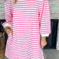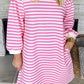 Pink Stripe Round Neck Puff Sleeve Pocketed Shift Dress