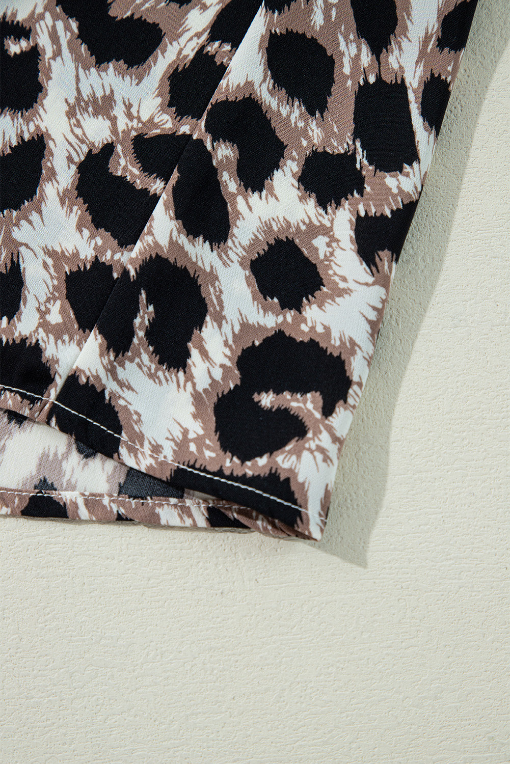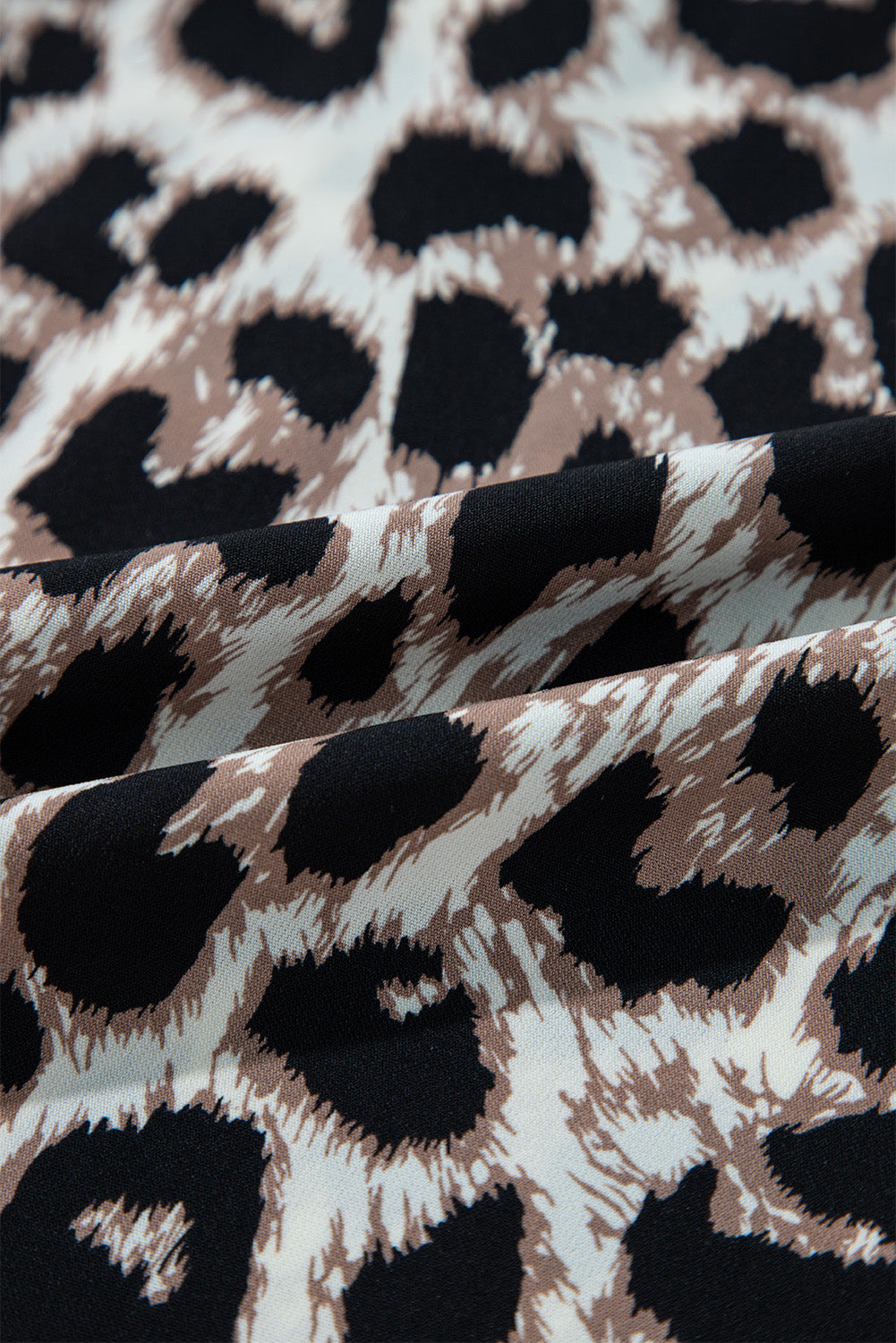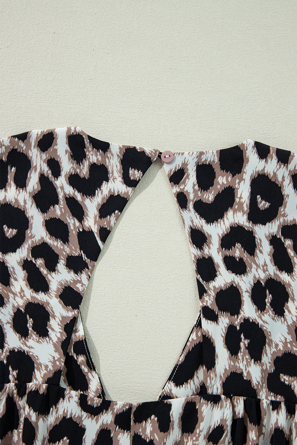 Khaki Cheetah Print Backless V Neck Loose Fit Mini Dress