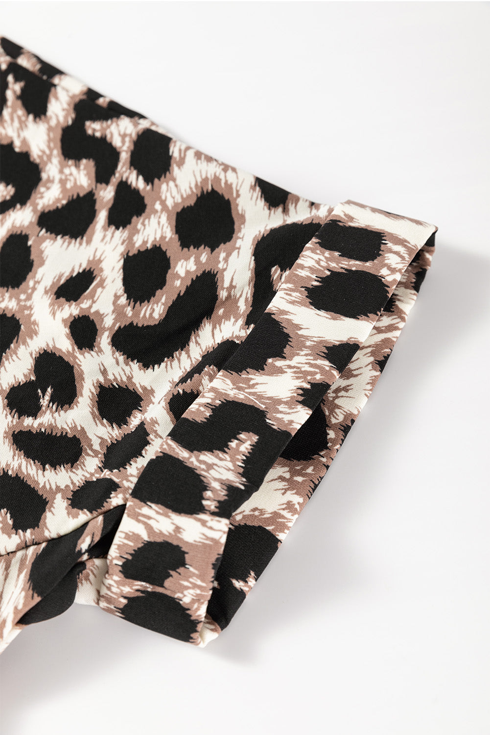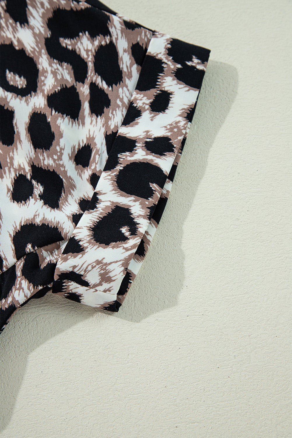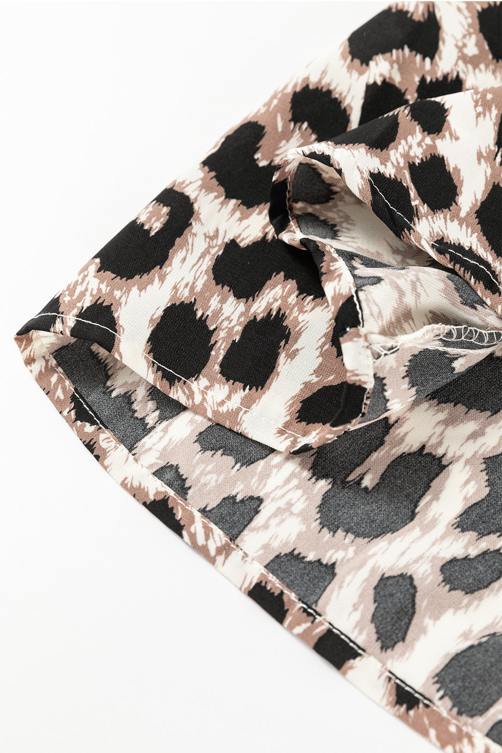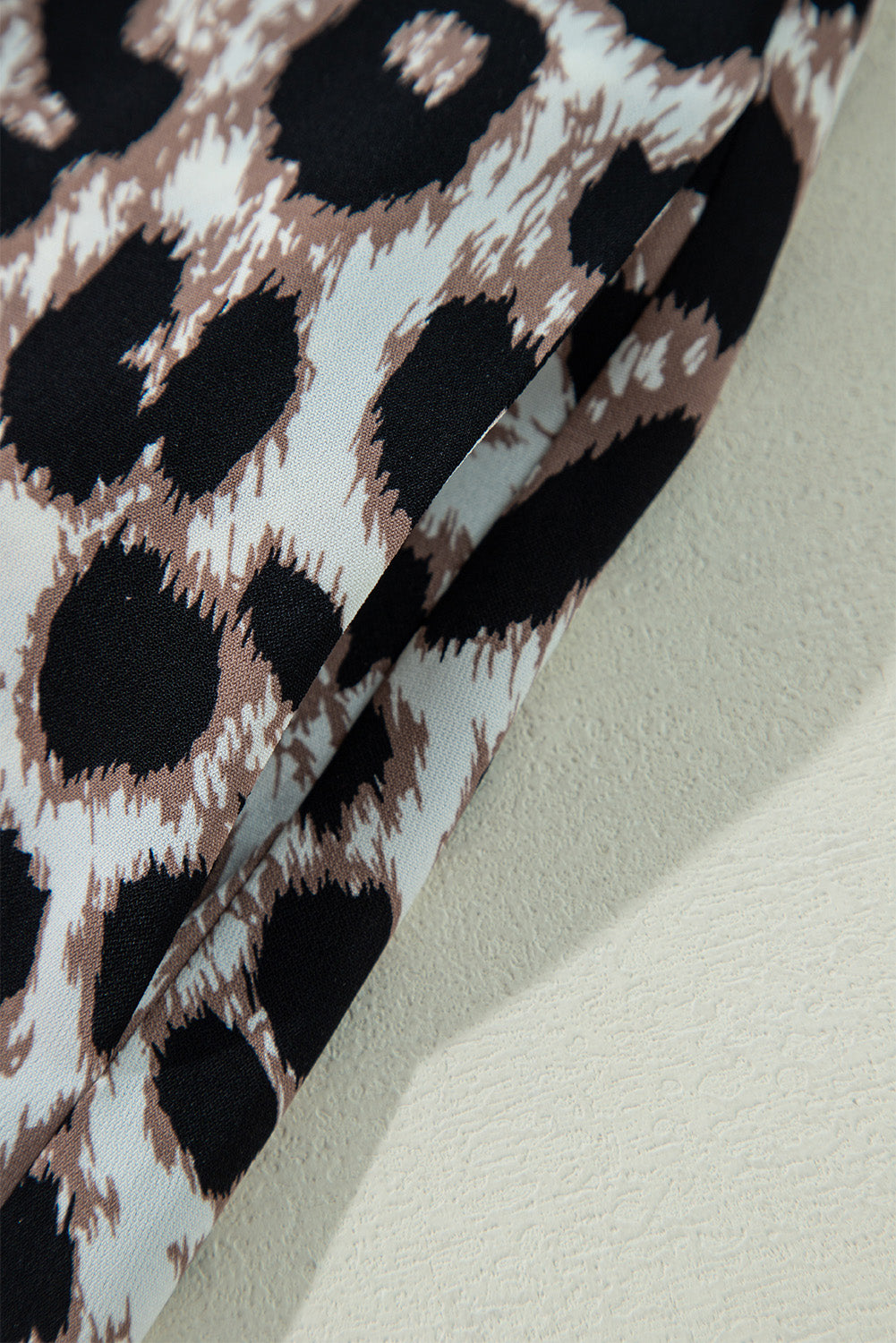 Khaki Cheetah Print Backless V Neck Loose Fit Mini Dress