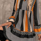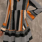 Black Striped Polka Dot Print Ruffled Hem V Neck Mini Dress