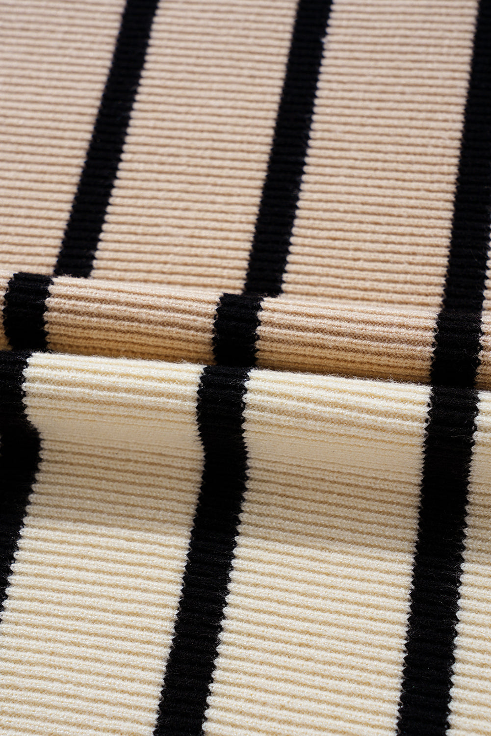Khaki Stripe Color Block Quarter Zip Collar Short Sleeve Sweater Dress