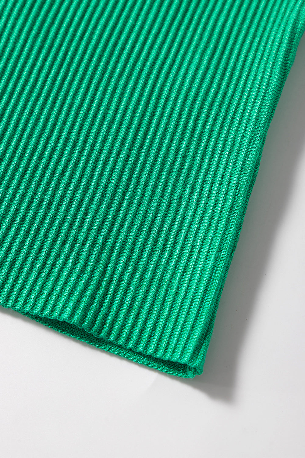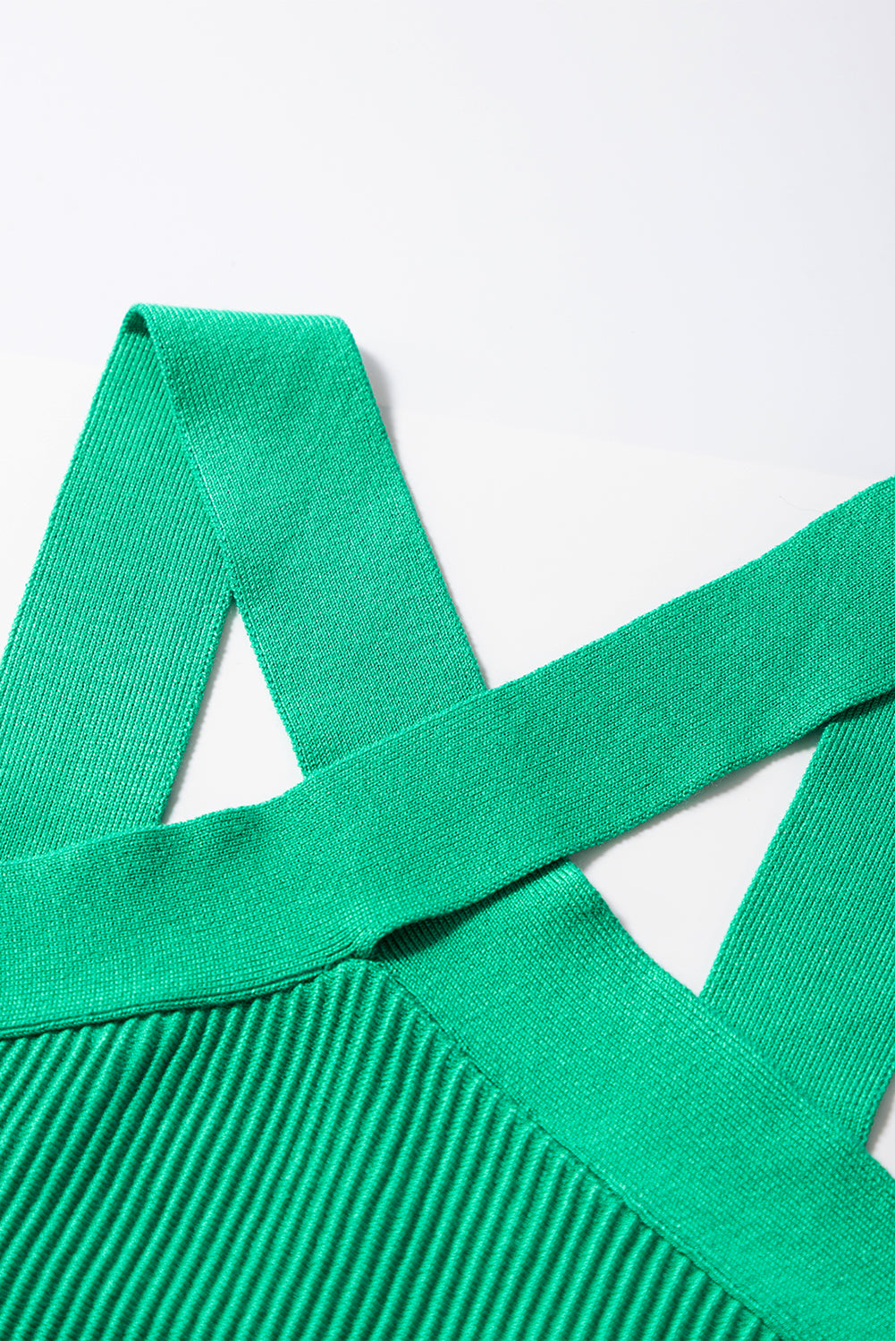 Dark Green Ribbed Criss Cross Halter Neck Sheath Sweater Tank Top
