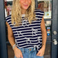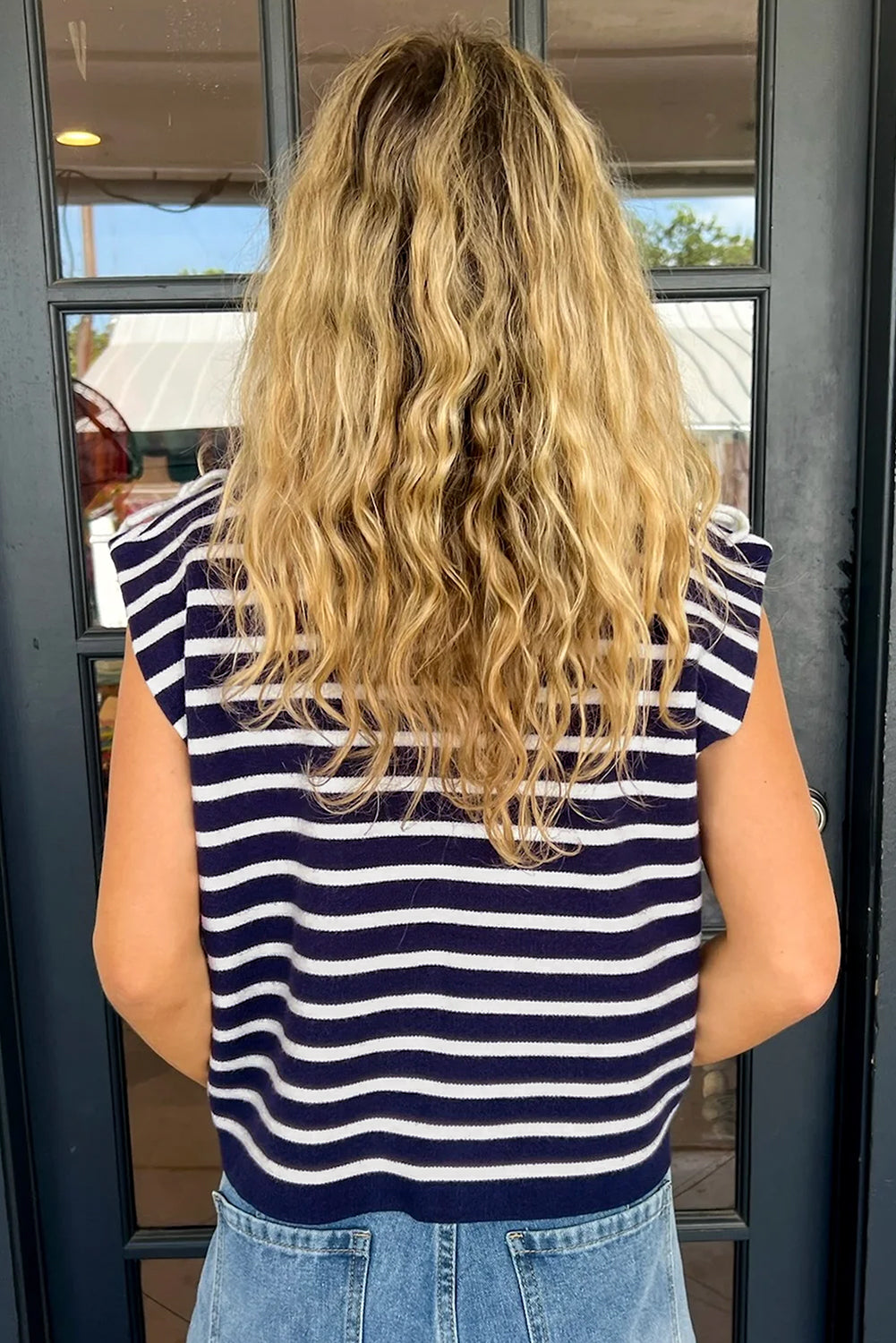 Blue Stripe Knitted Bow Decor Sweater Vest