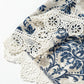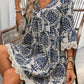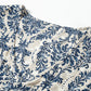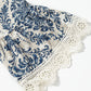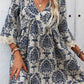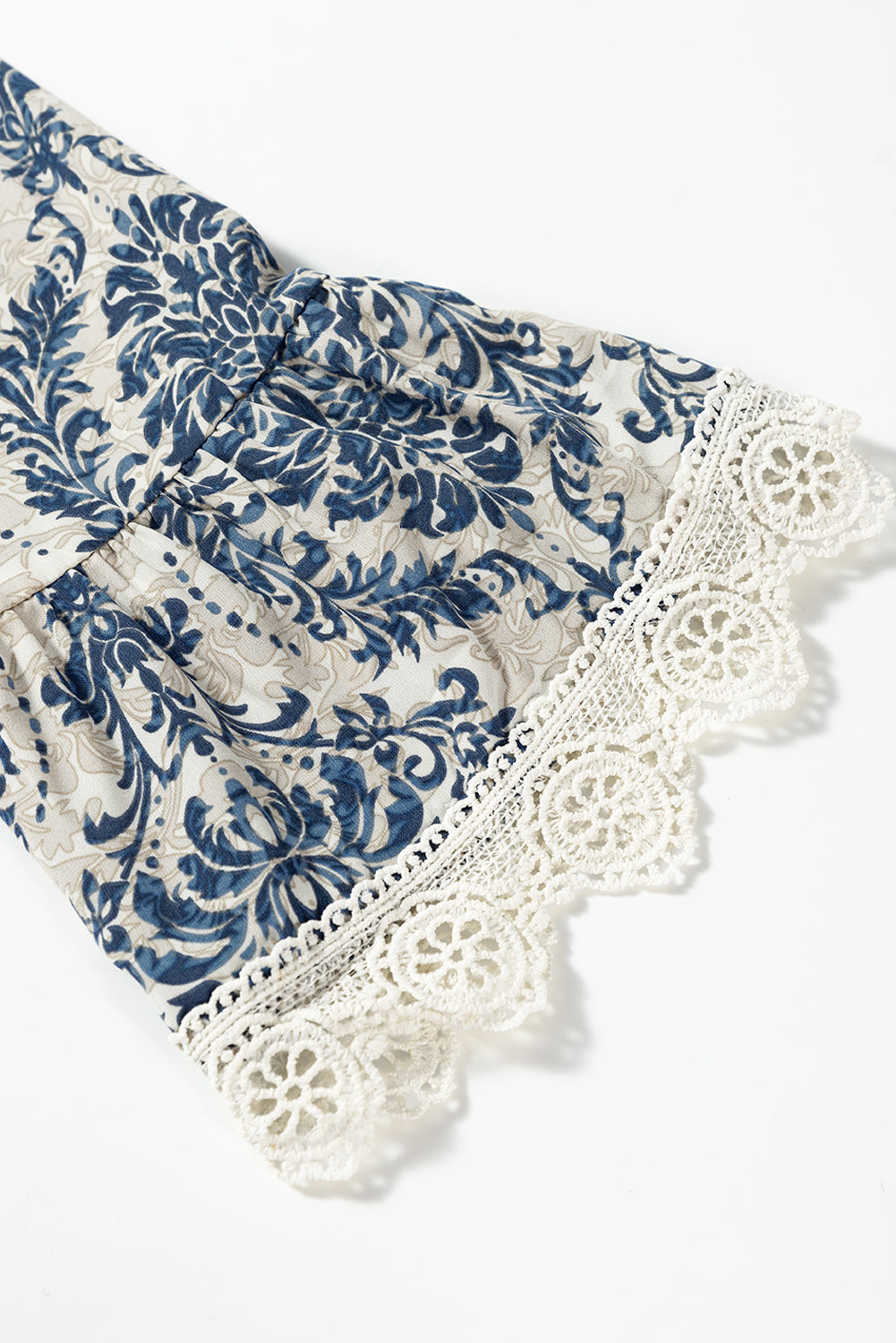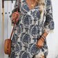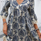 Sky Blue Vintage Printed Lace Trim V Neck 3/4 Sleeve Loose Dress