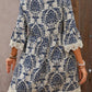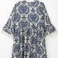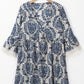 Sky Blue Vintage Printed Lace Trim V Neck 3/4 Sleeve Loose Dress