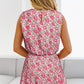 Pink Floral Print Puffy Cropped Tank and Mini Skirt Set