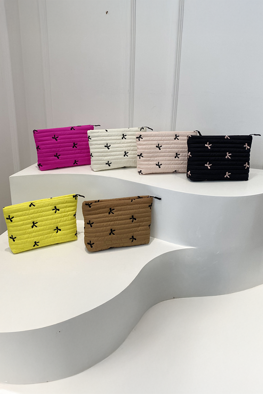 White Bow Ties Print Quilted Large Capacity Makeup Bag
