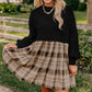 Black Plaid Patchwork High Waist Sweatshirt Mini Dress