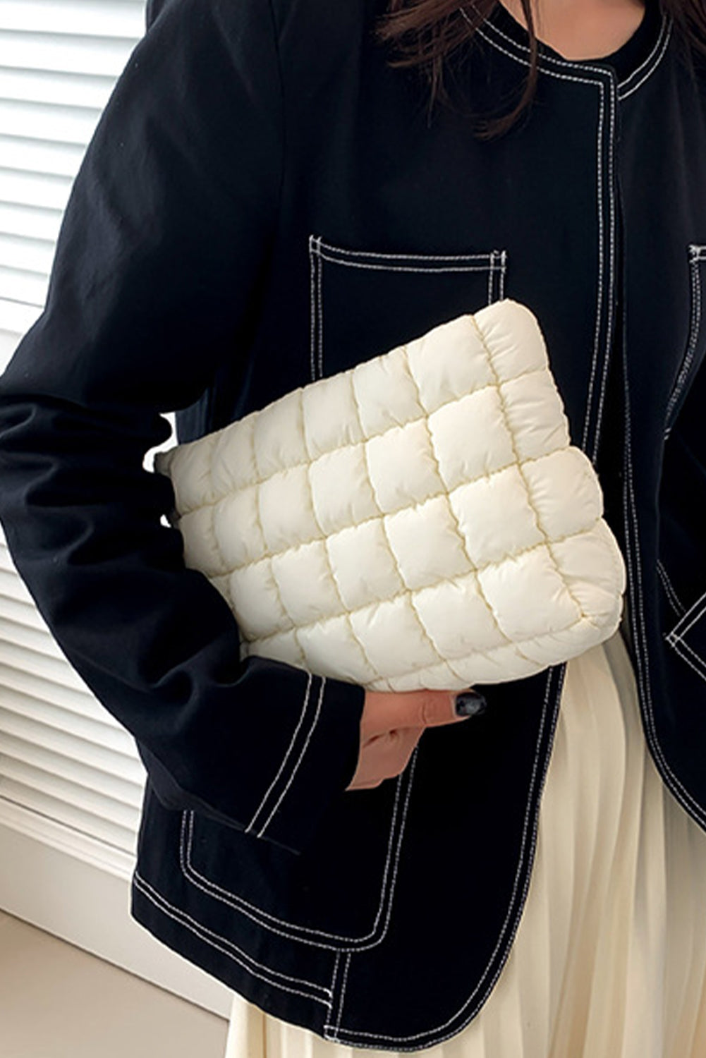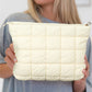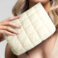 White Zipper Quilted Puffer Cosmetic Bag