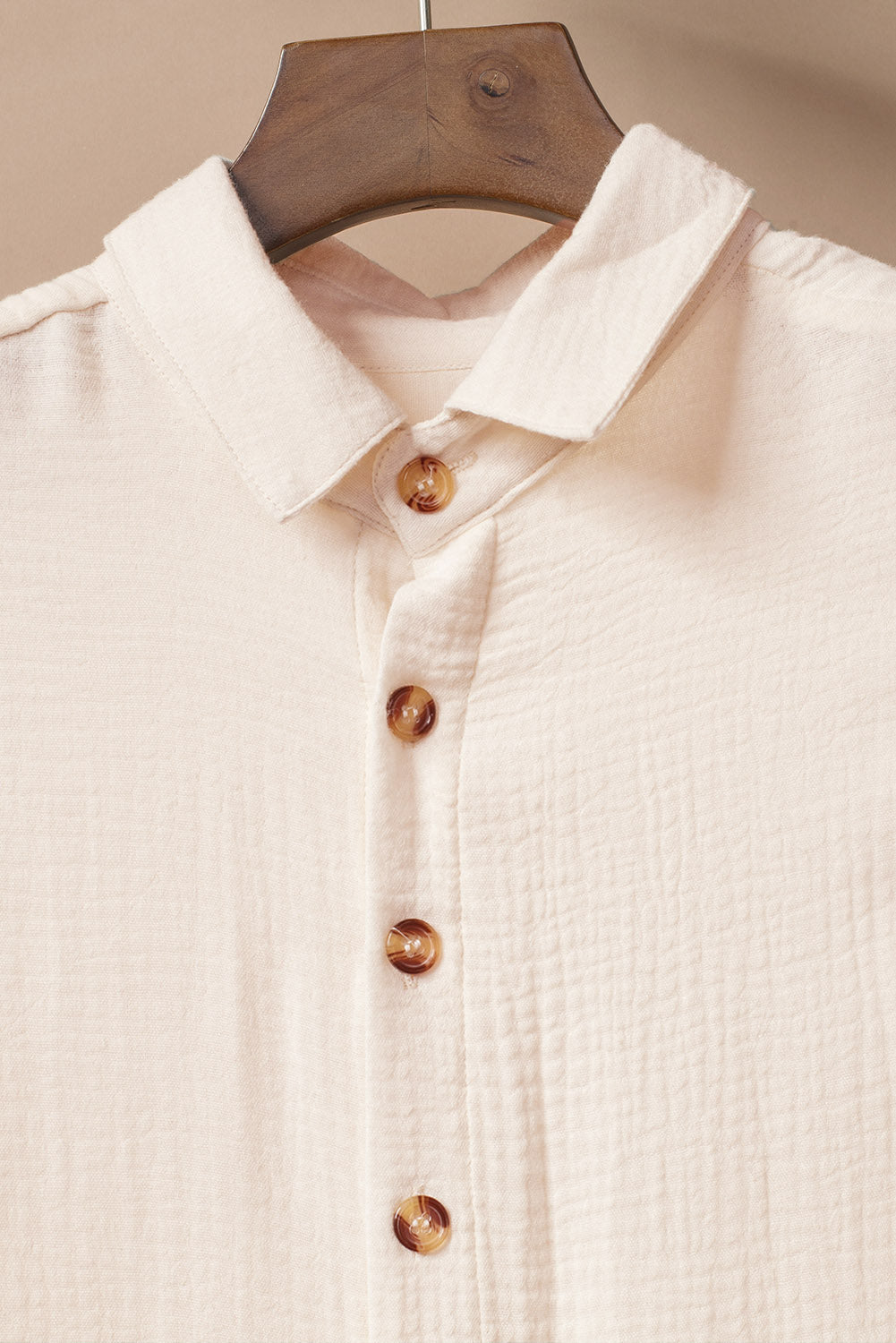 Apricot Crinkled Buttons Maxi Beach Dress with Slits