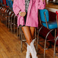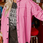 Bonbon Pearl Beaded Raw Hem Button Up Denim Jacket