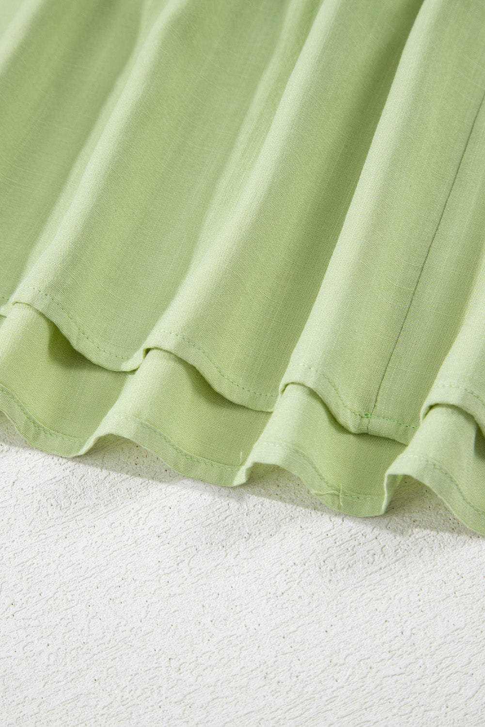 Laurel Green Floral Crochet Short Sleeve Notch V Neck Tiered Plus Size Mini Dress