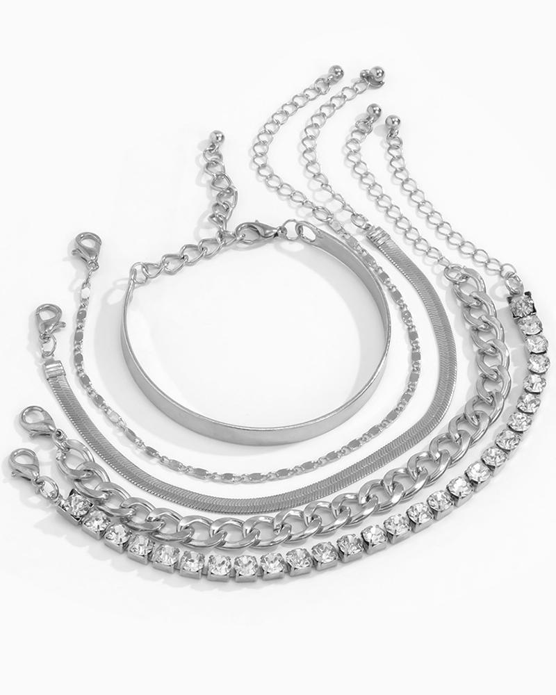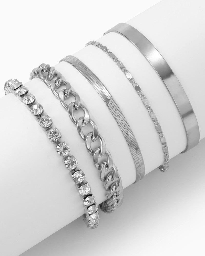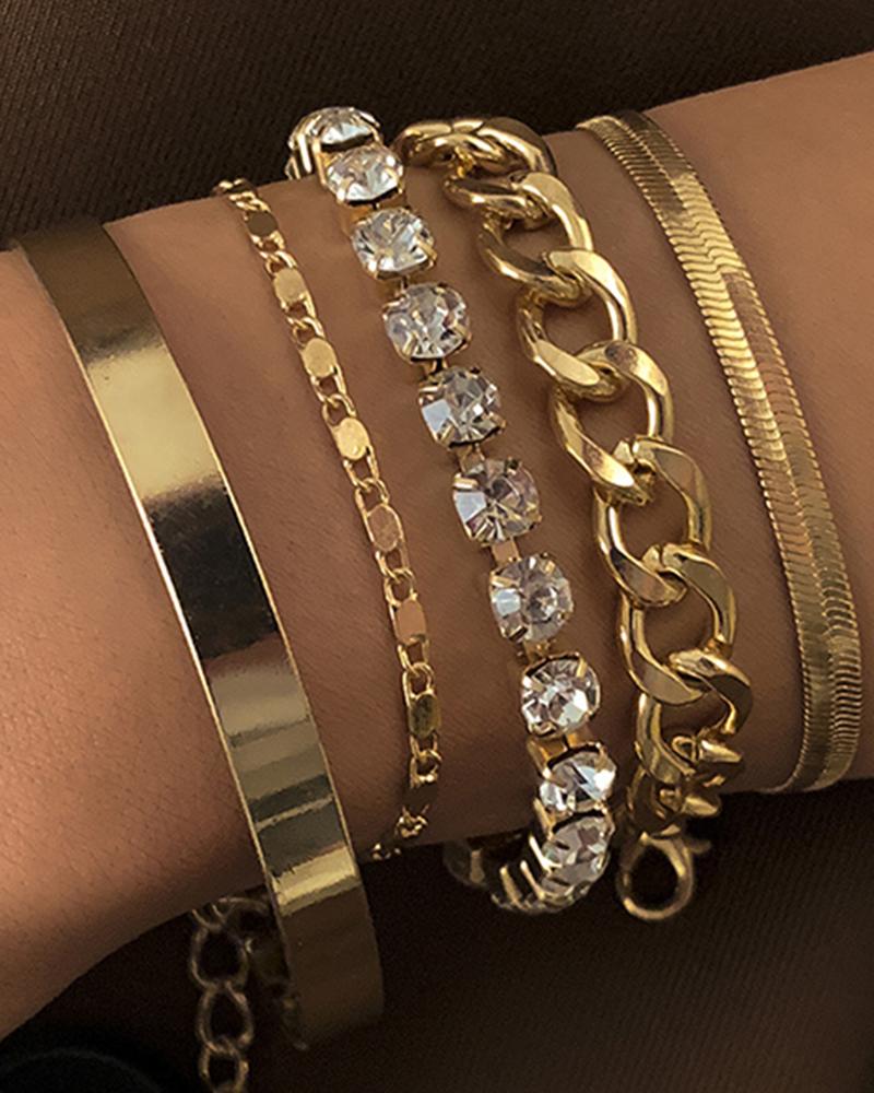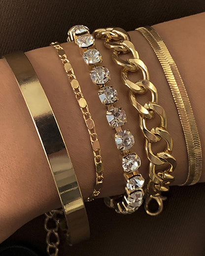 5pcs Women's Fashion Gorgeous Faux Diamond Geometric Cutout Bracelets Set