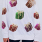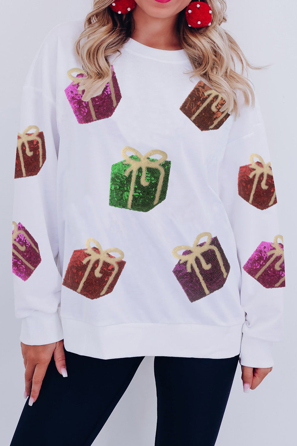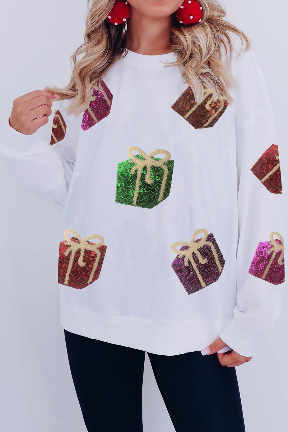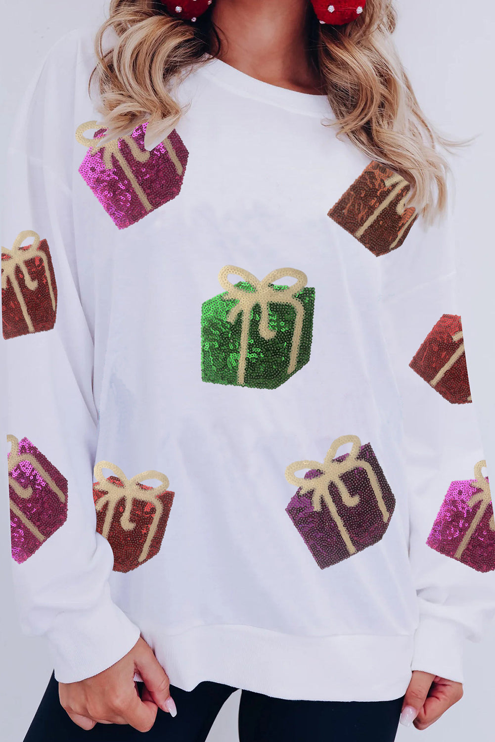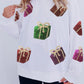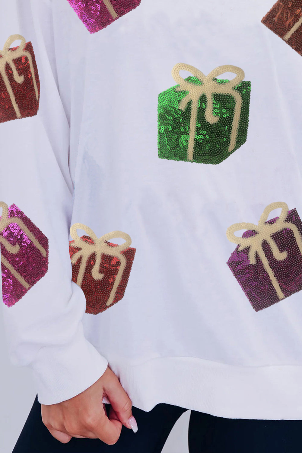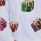 White Sequin Christmas Gift Graphic Pullover Sweatshirt