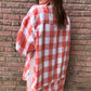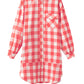 Pink Oversized Plaid Puff Sleeve Round Hem Shirt Dress