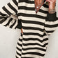 Black Stripe Collared V Neck Long Sleeve Loose Casual Dress