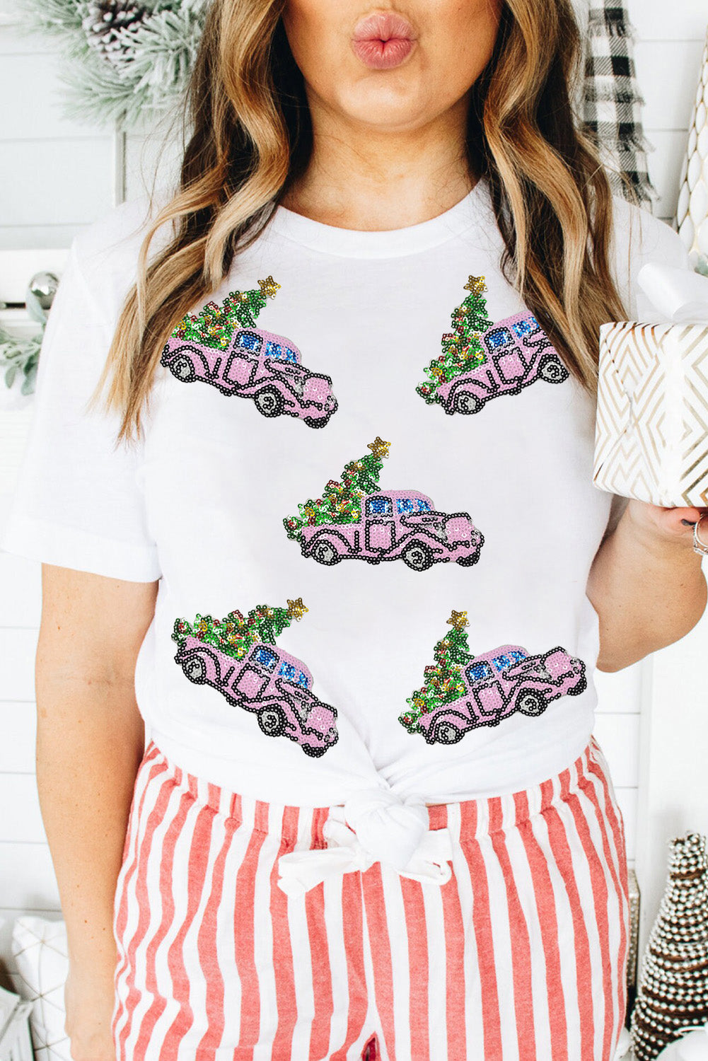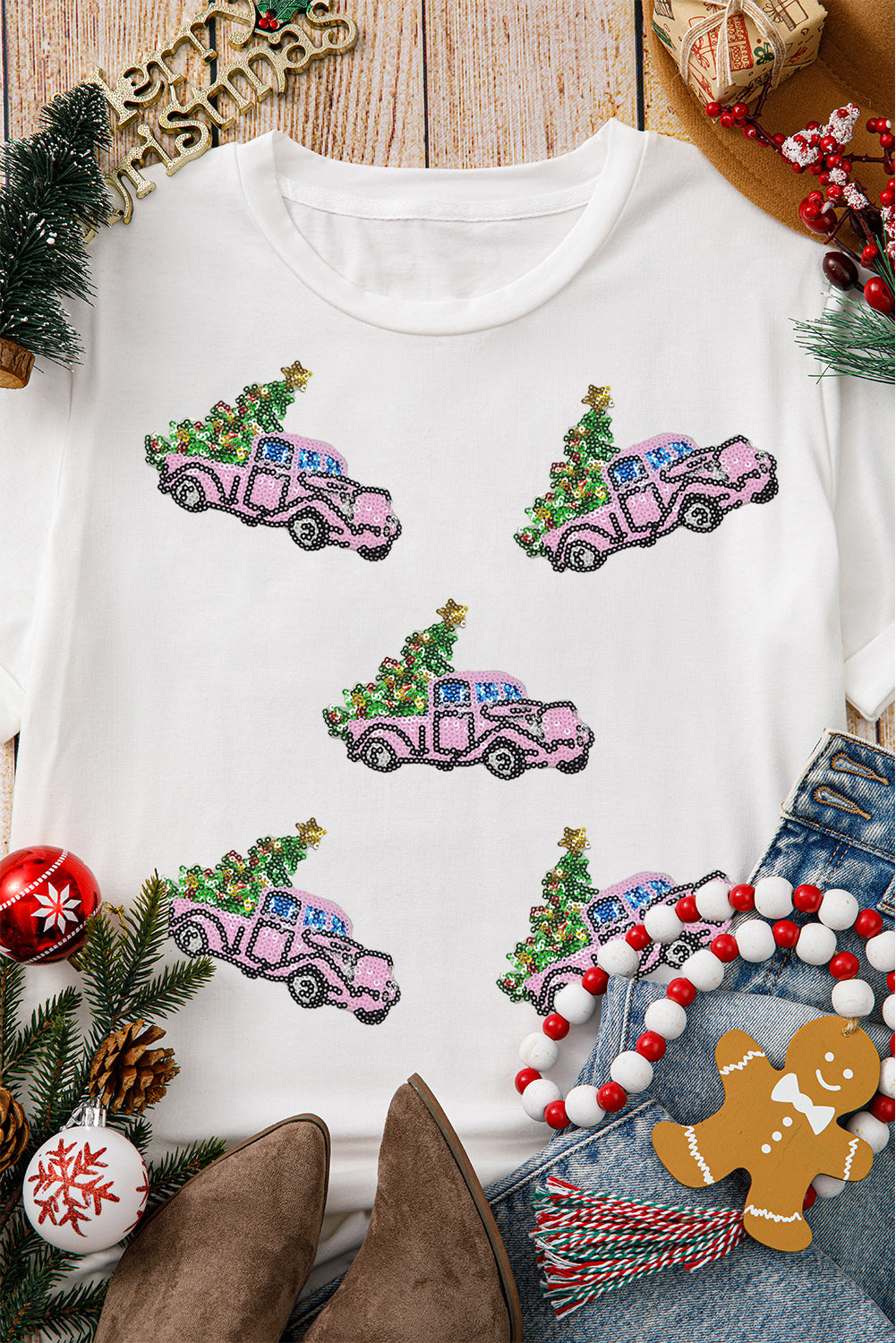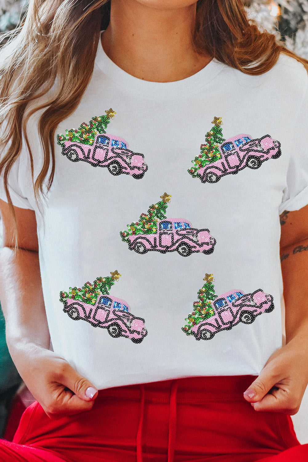 White Truck Christmas Trss Patched Pattern Crewneck Tee