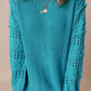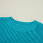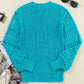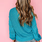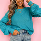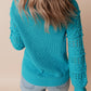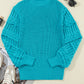 Turquoise Ruffled Eyelet Bubble Sleeve Sweater