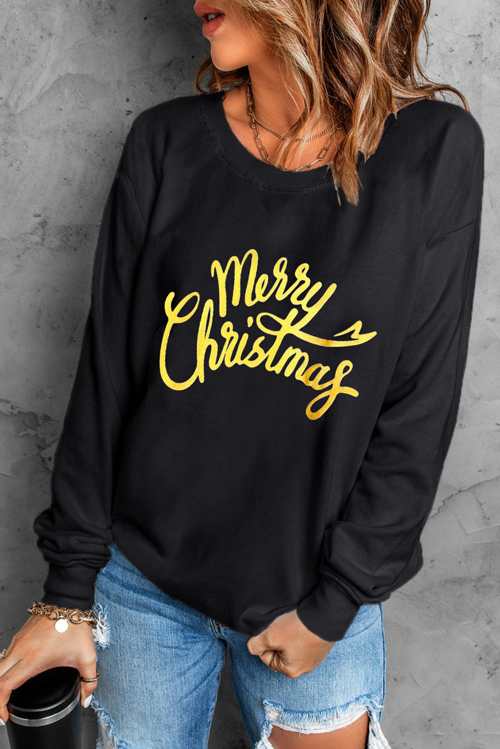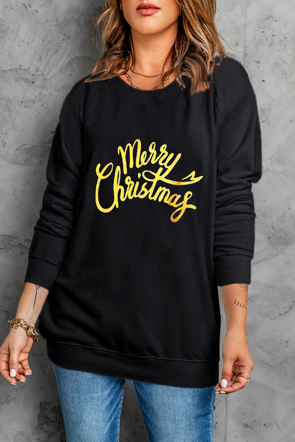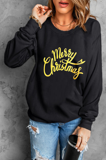 Black Merry Christmas Letter Graphic Drop Shoulder Sweatshirt