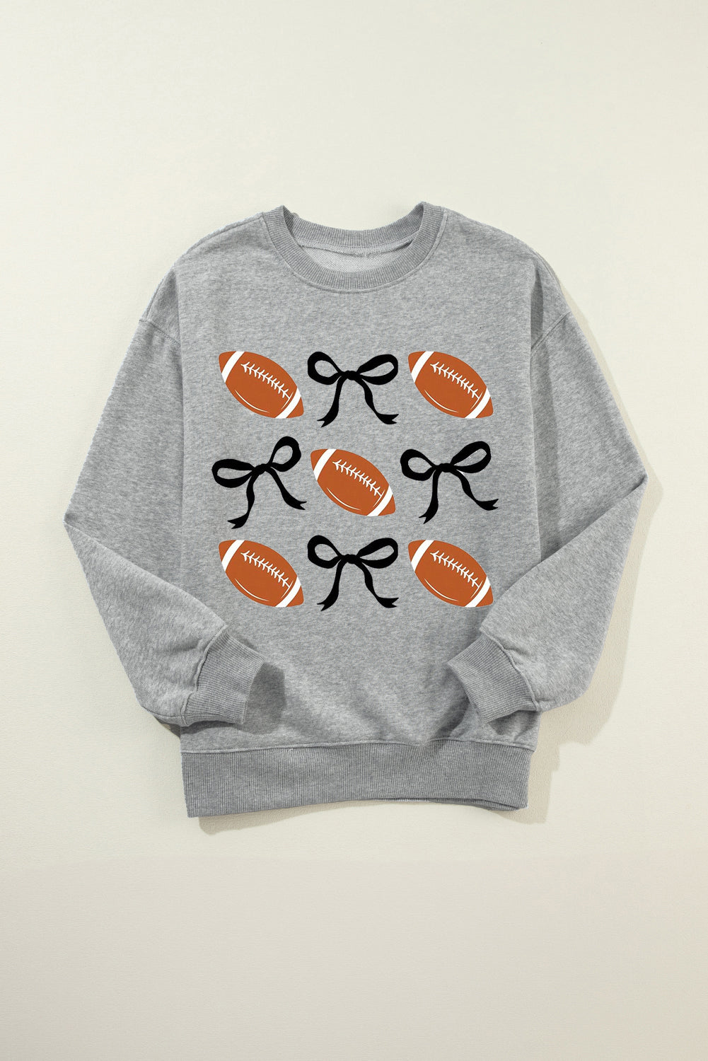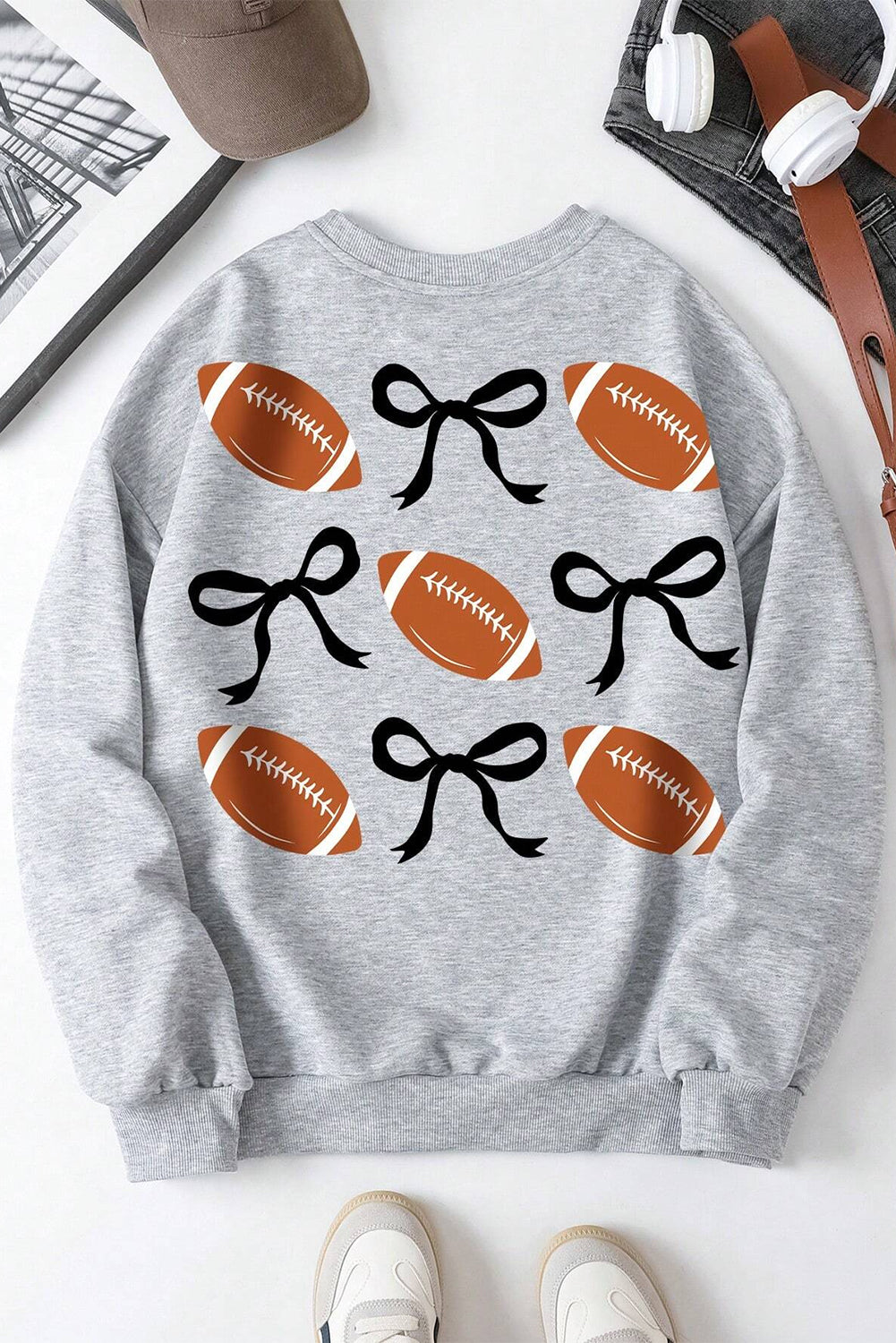 Gray Rugby Football Bow Knot Print Crewneck Sweatshirt