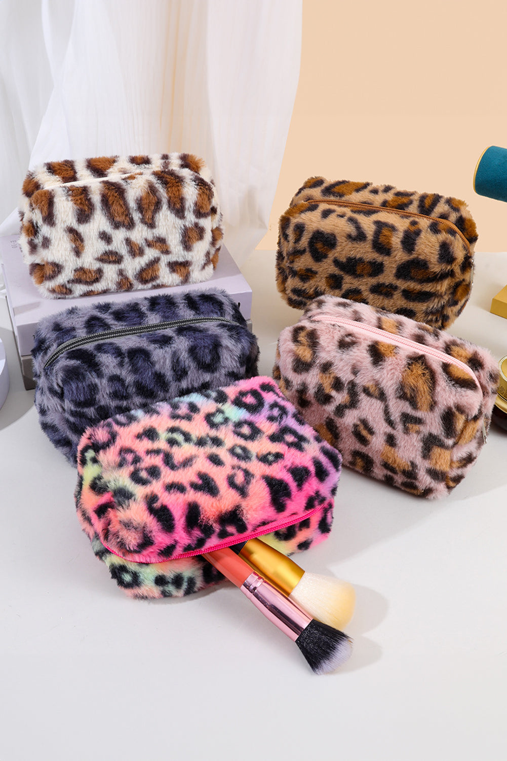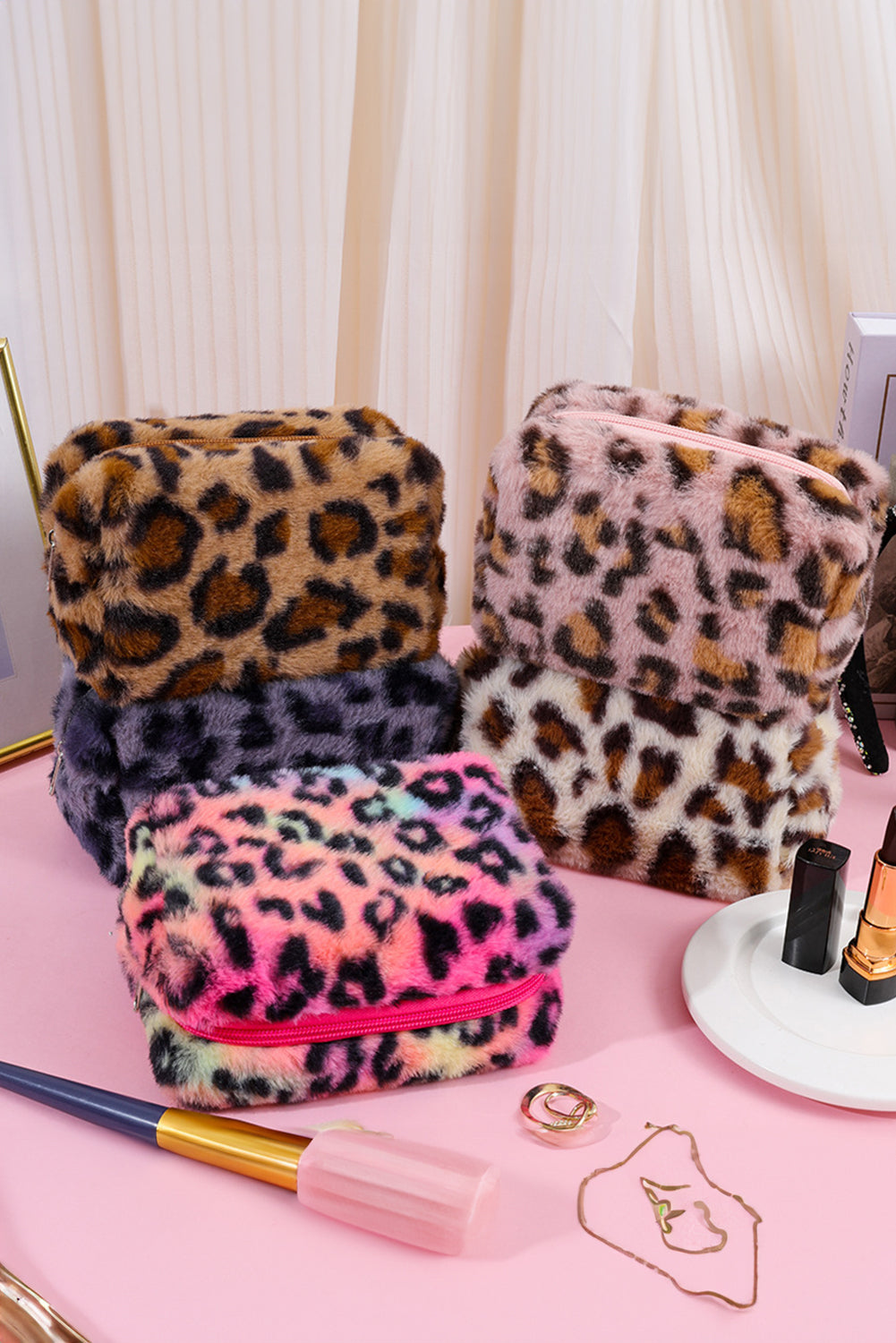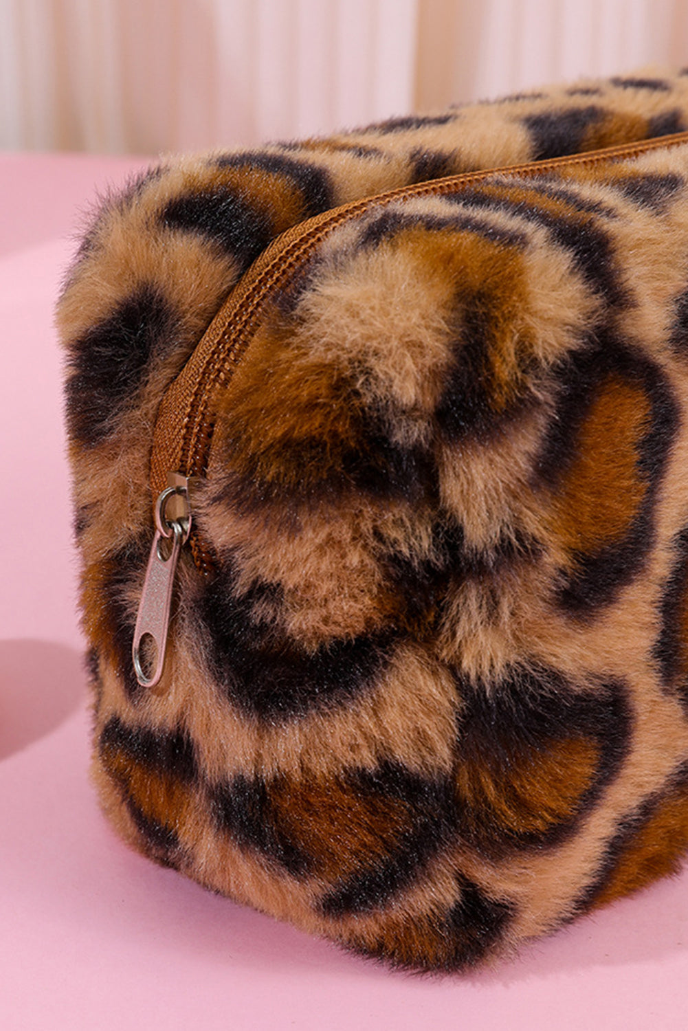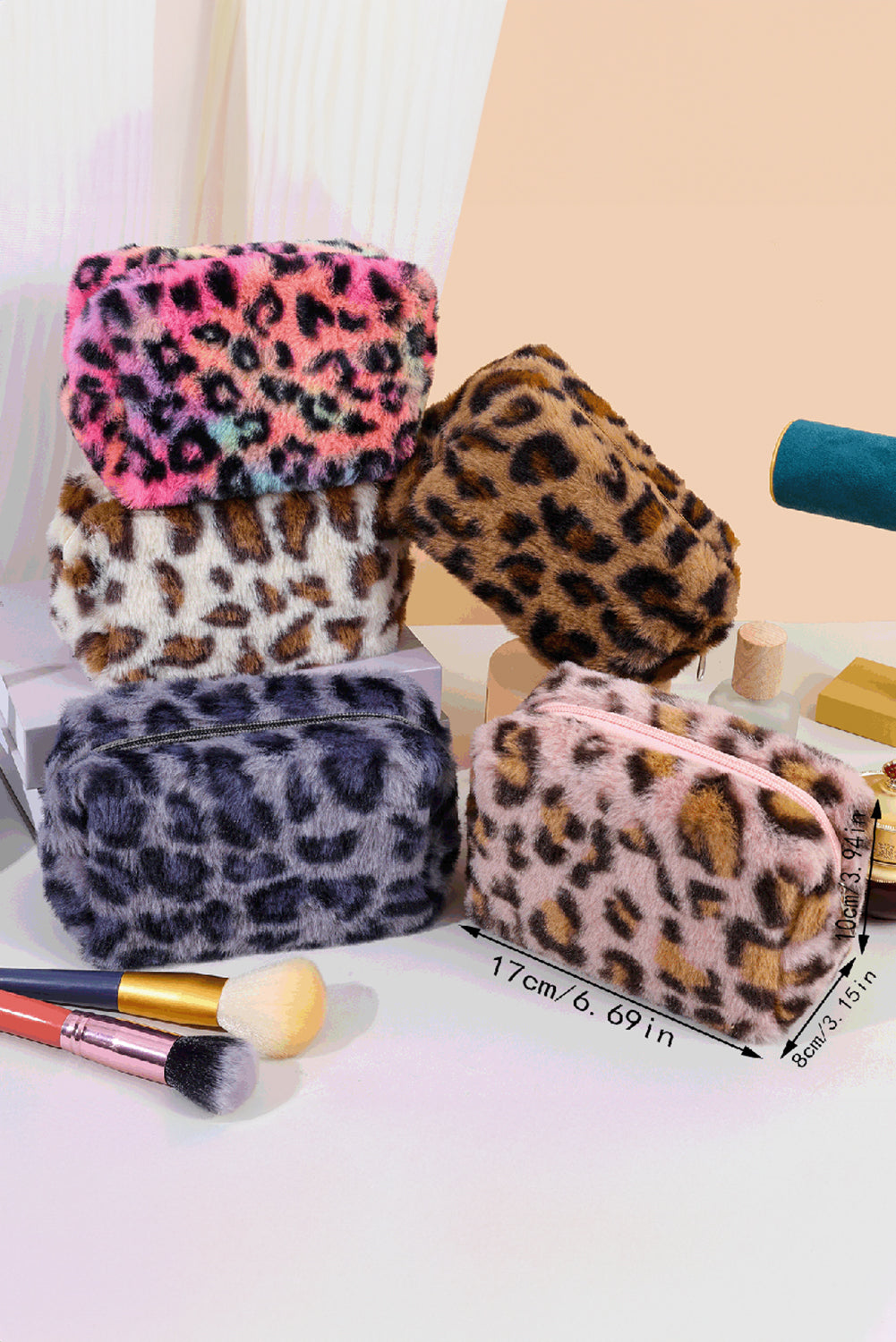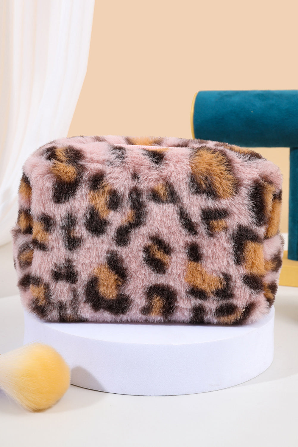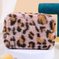 Peach Blossom Leopard Print Zipper Plush Cosmetic Bag