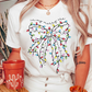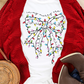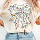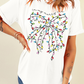 White Colored Light Bowknot Graphic Crewneck T Shirt