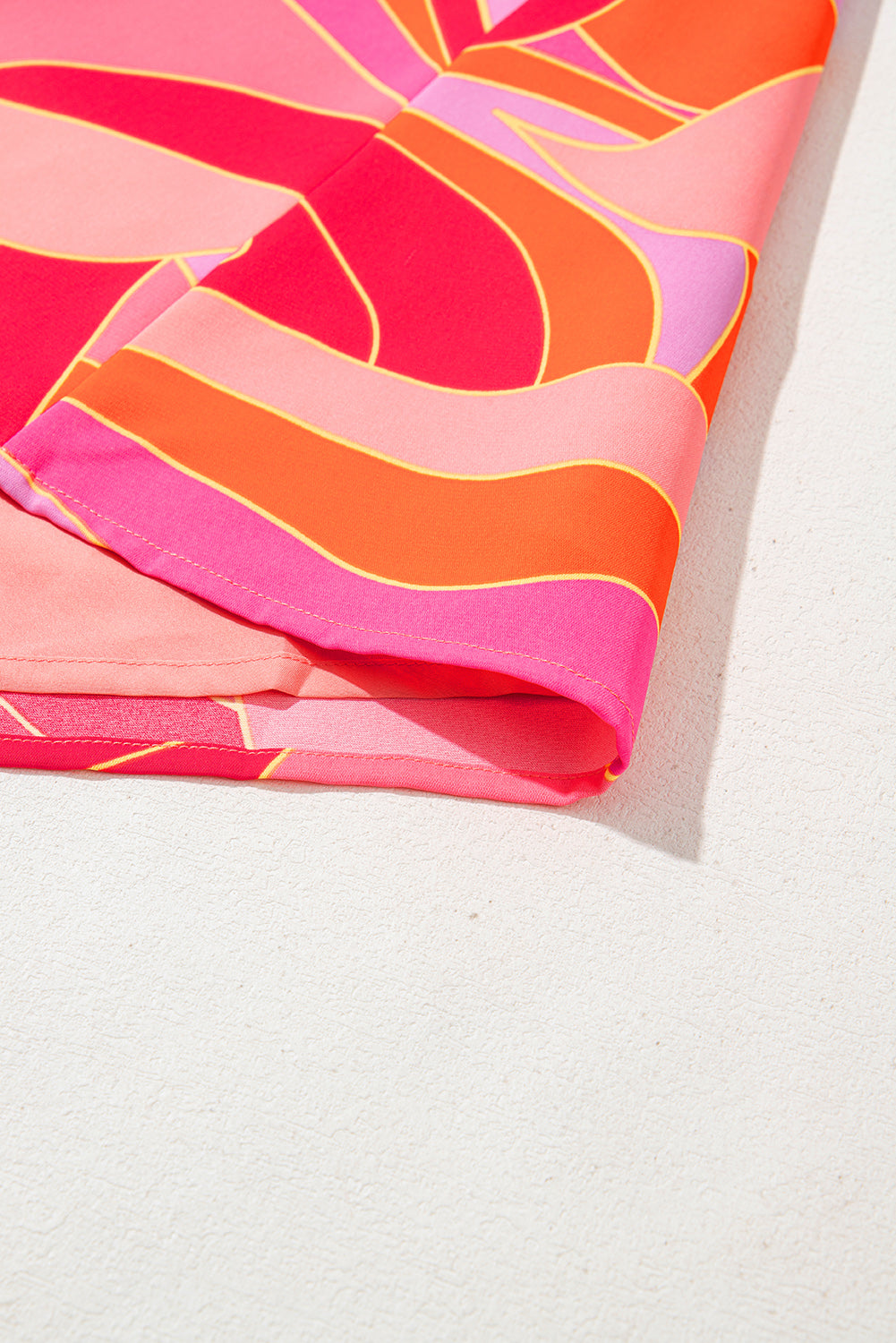 Rose Abstract Floral Print Sleeveless Shift Mini Dress
