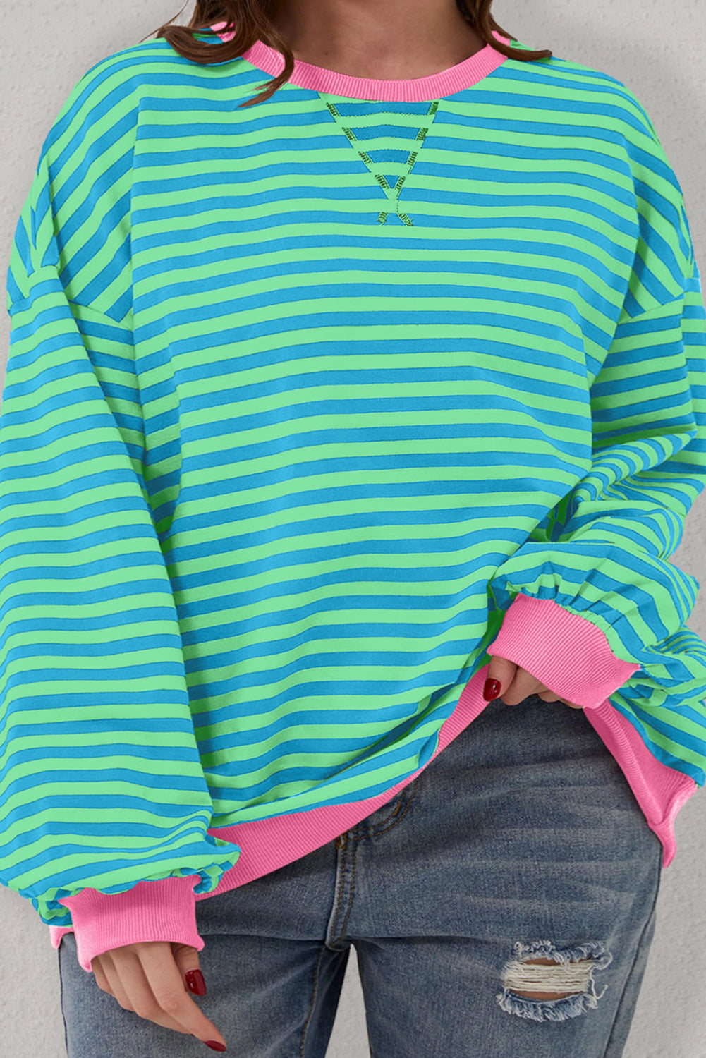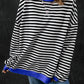 Black Stripe Oversized Contrast Trim Pullover Sweatshirt