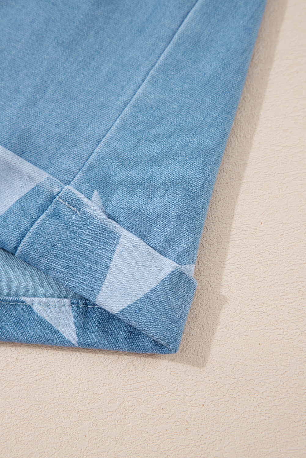 Light Blue Star Printed Buttoned Straps Pocketed Denim Romper