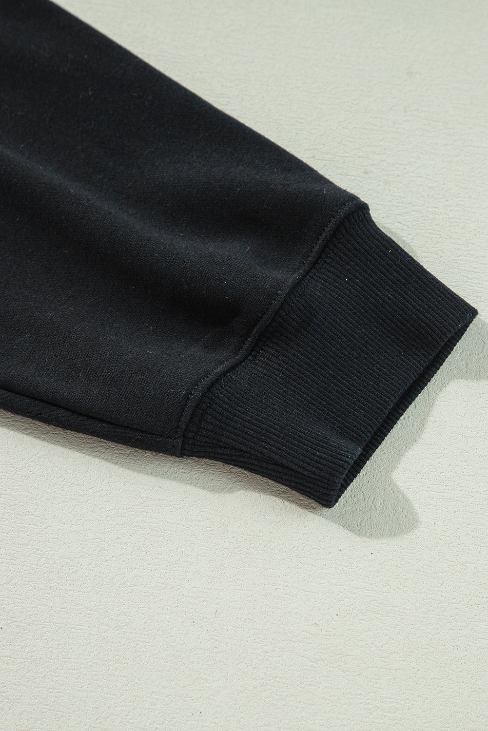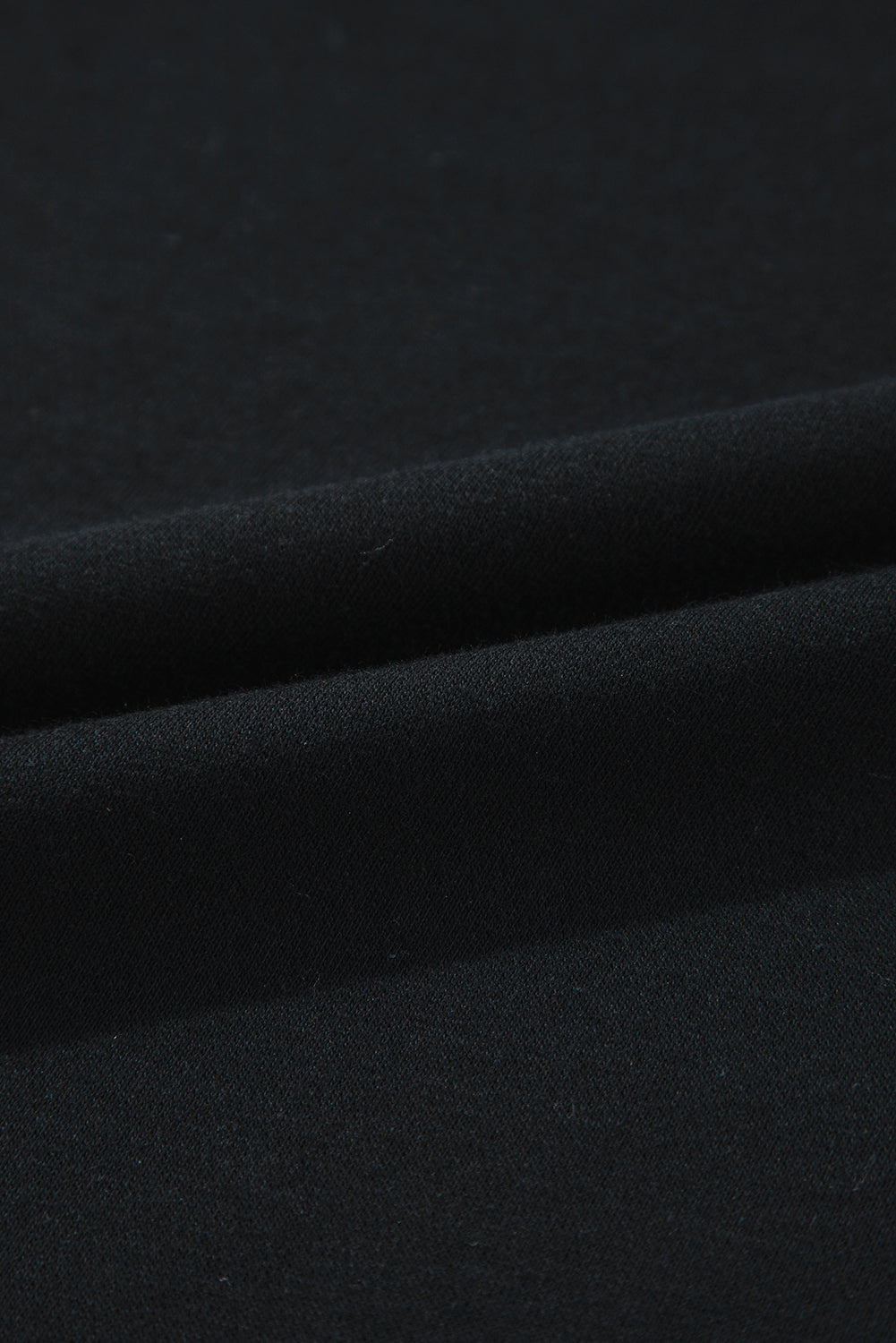 Black Solid Crew Neck Drop Shoulder Plus Size Sweatshirt