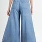 Beau Blue Mineral Wash Button Fly Waist Wide Leg Jeans