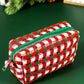 Racing Red Christmas Style Crochet Zipper Square Makeup Bag