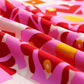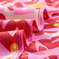 Strawberry Pink Geometric Print Shirred Cuff 3/4 Sleeve Loose Blouse