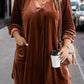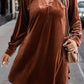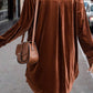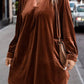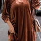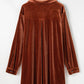 Coffee Plus Size V Neck Collared Pleated Back Rounded Hem Velvet Dress