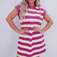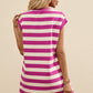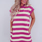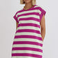 Rose Stripe Cap Sleeve Pocketed Shift T-shirt Dress