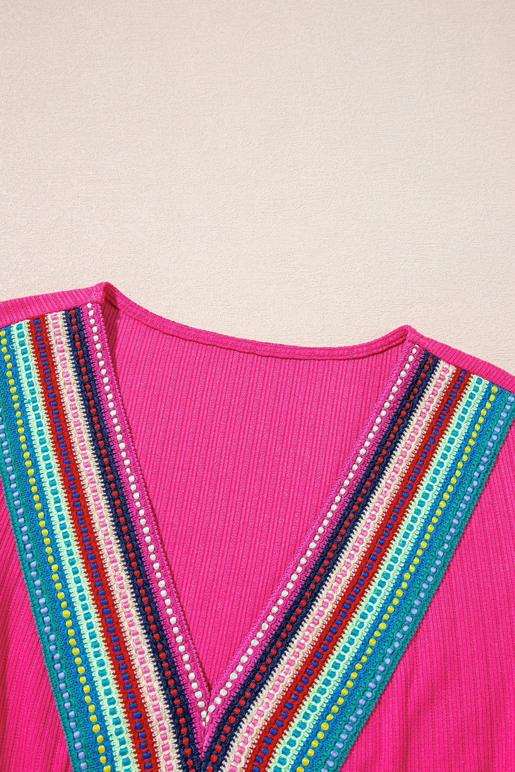 Rose Red Colorful Crochet V Neck Textured Tiered Ruffled Long Sleeve Mini Dress