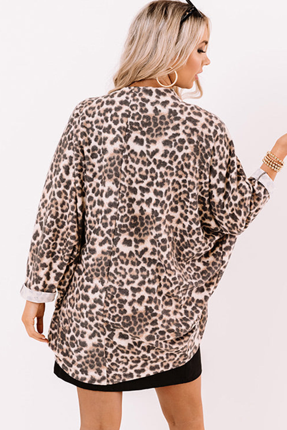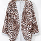 Khaki Leopard Print Batwing Sleeve Loose Tunic Cardigan