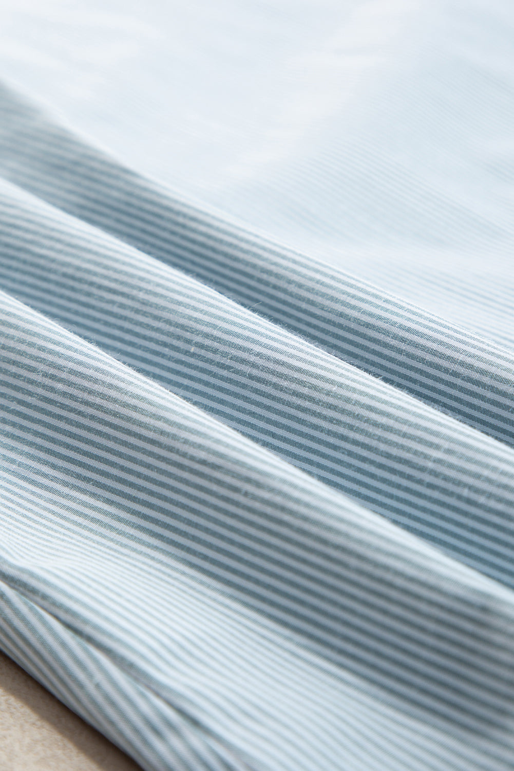Sky Blue Stripe Frilled Trim Button Up Long Sleeve Shirt